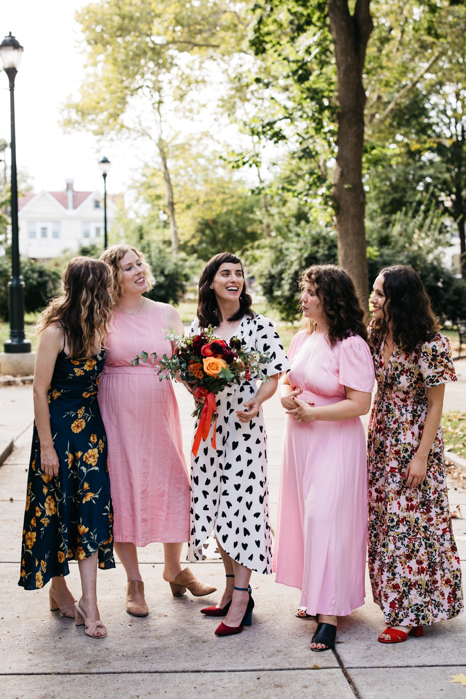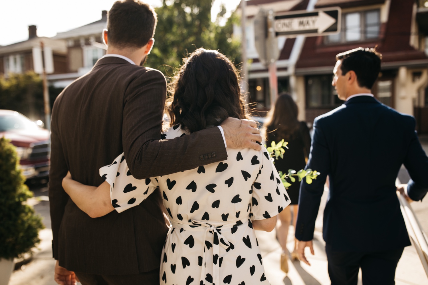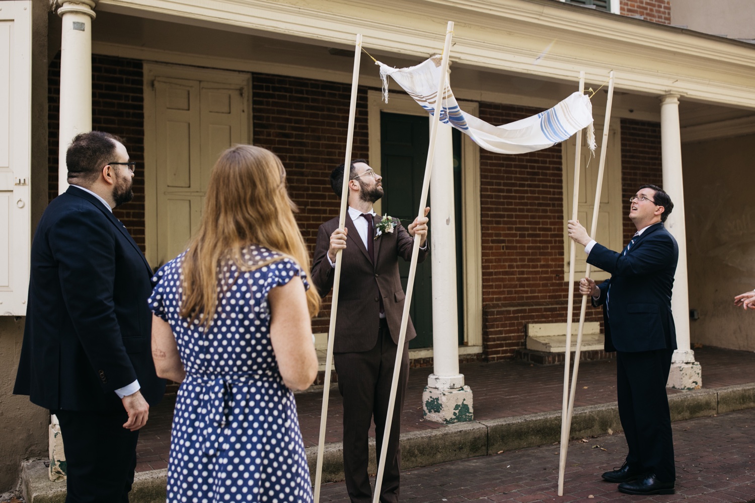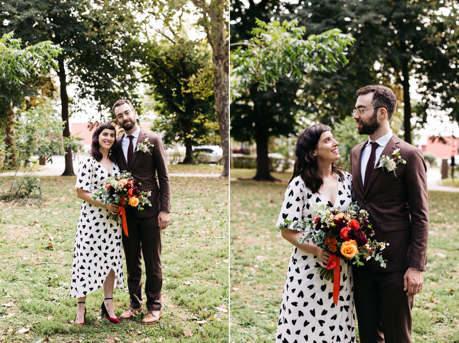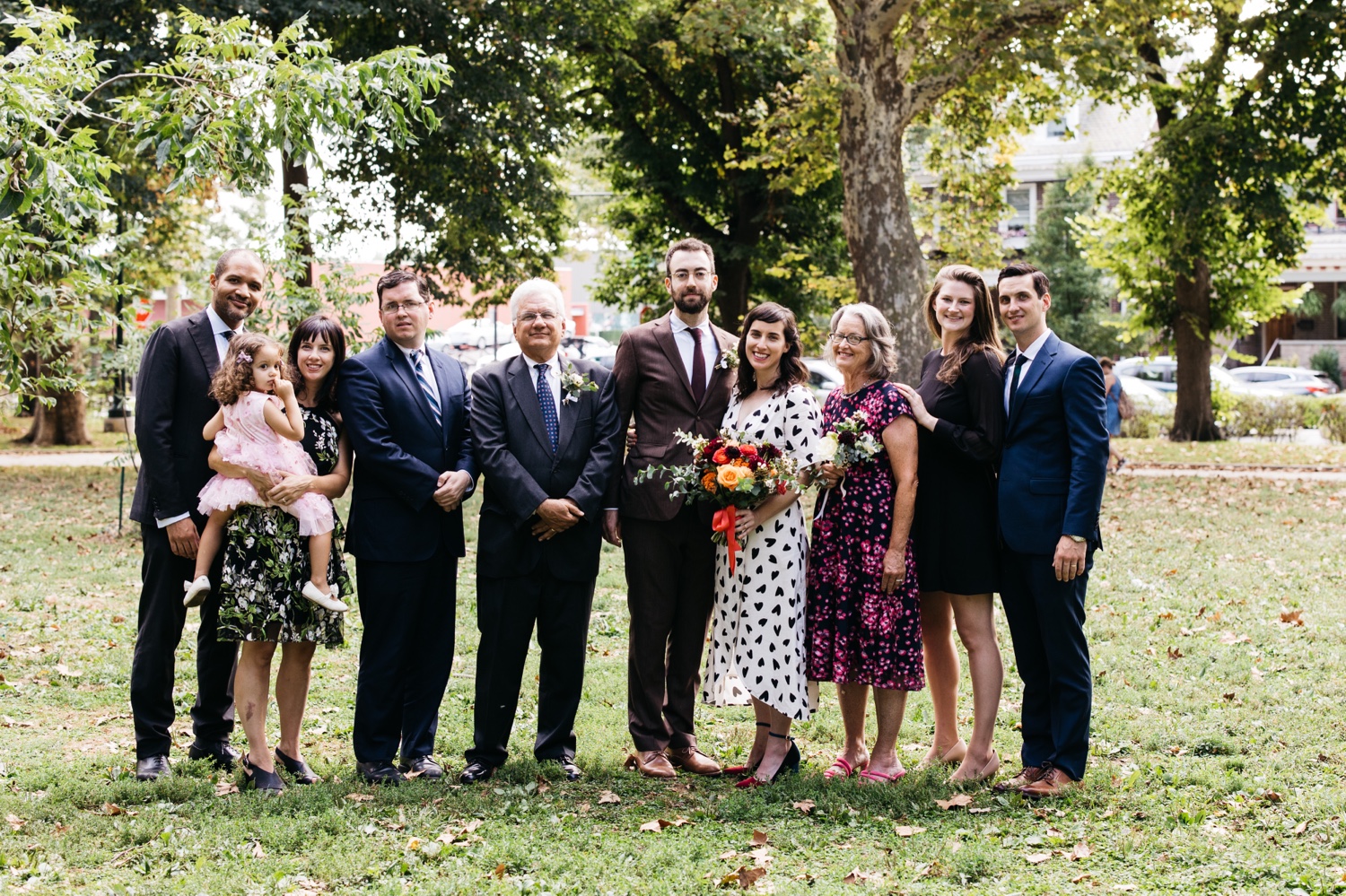To start the day, the couple invited just their family members and close friends to walk a few blocks from their house in South Philly to Stephen Girard park. Adam’s grandmother officiated their intimate ceremony at the park with a beautiful Ketubah designed by a close friend in attendance.