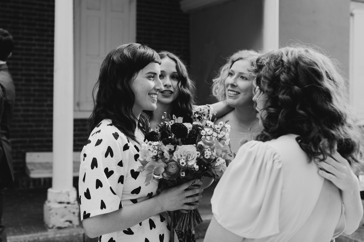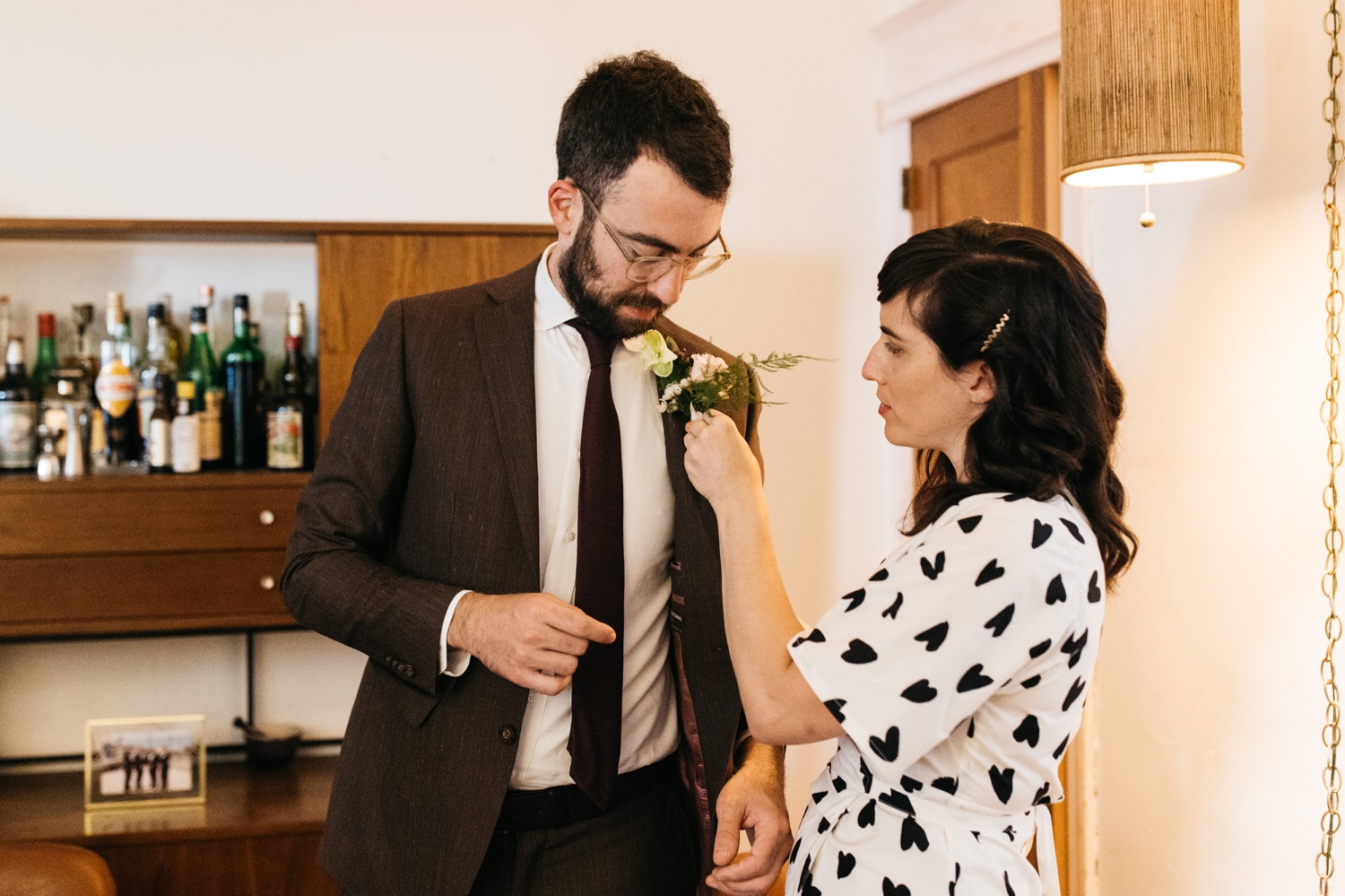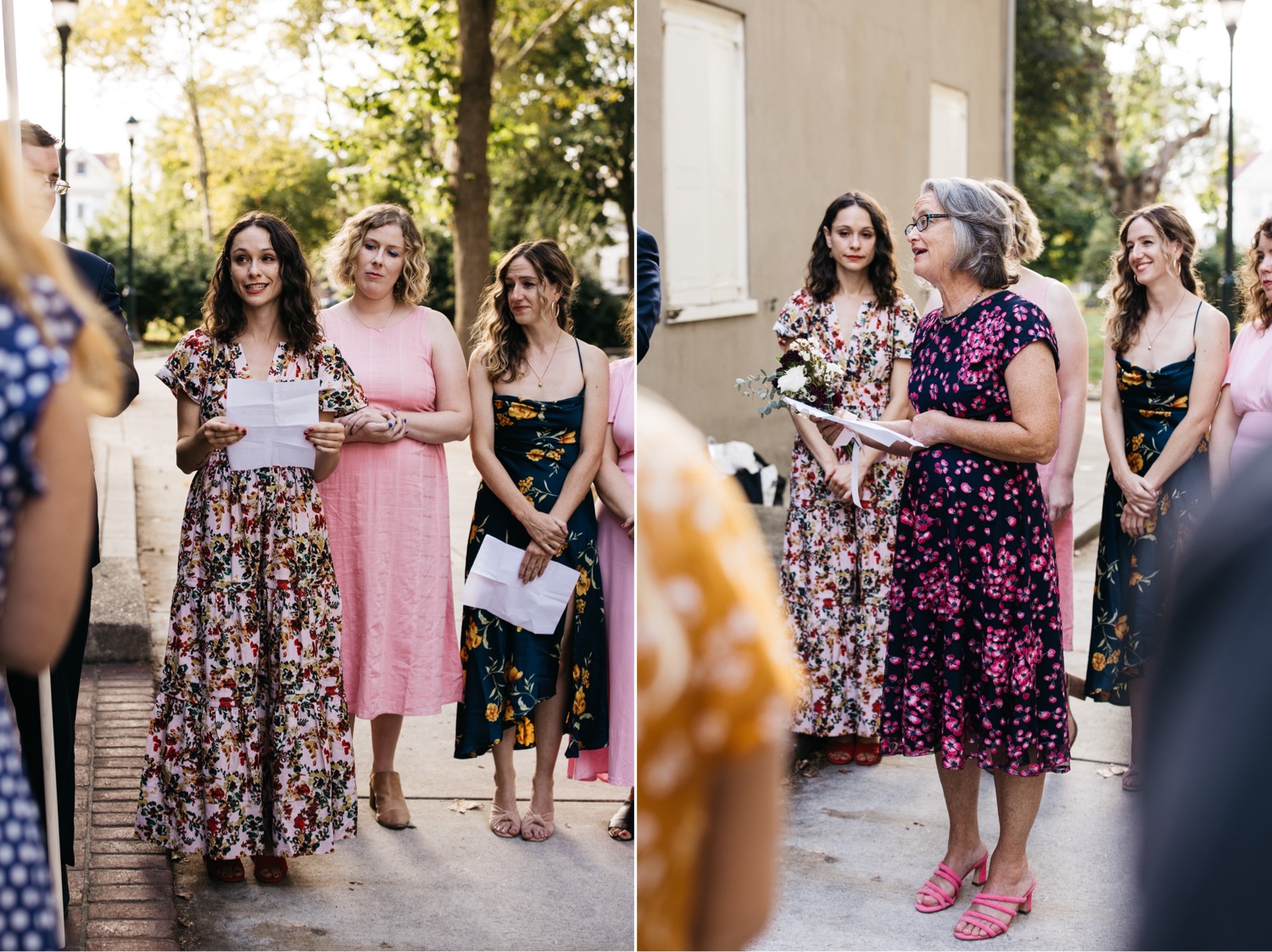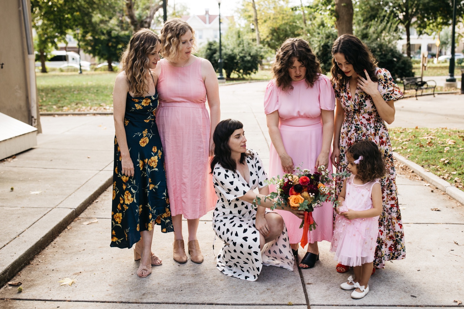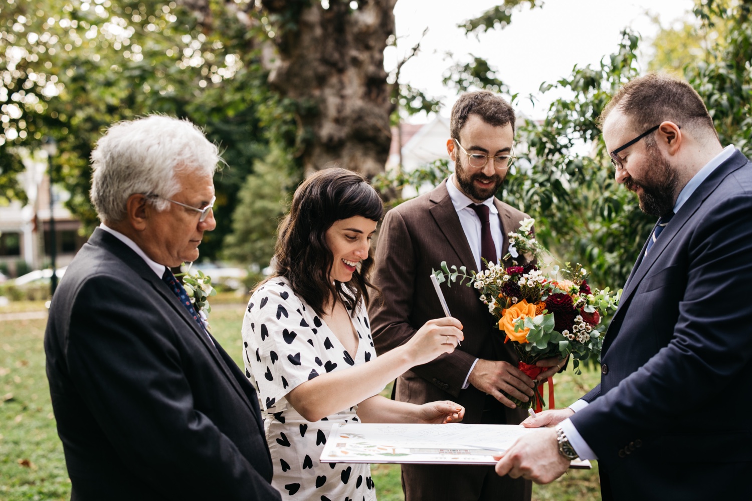 To start the day, the couple invited just their family members and close friends to walk a few blocks from their house in South Philly to Stephen Girard park. Adam’s grandmother officiated their intimate ceremony at the park with a beautiful Ketubah designed by a close friend in attendance.