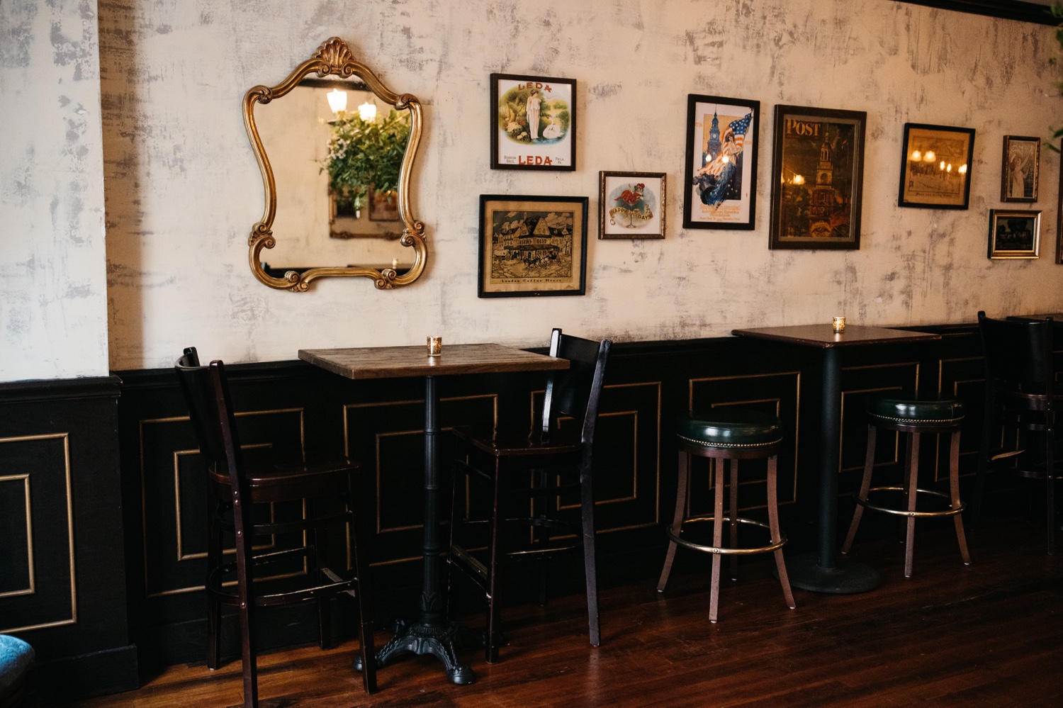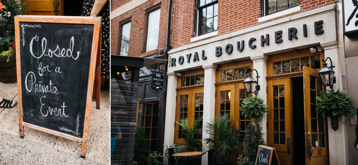 Venue and food: Royal Boucherie | Florist: Le Petit Jardin en Ville | Hair: Andre Richard Salon | Dress: Fabienne Chapot | Suit: Indochino | Rings: Bario Neal | Cake: Second Daughter Bakery | Band: Snacktime Philly