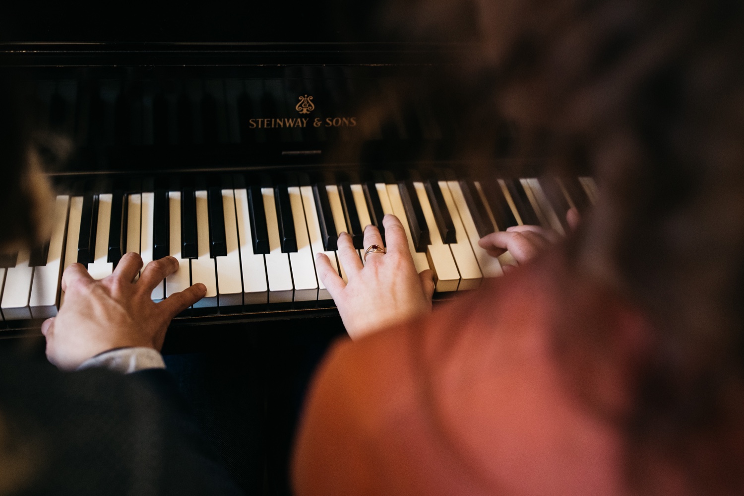 For their engagement session, Hannah and Colin invited to me their beautiful East Falls home. It was so nice and relaxed! They played the piano together, hung out with their cat Mango and took a walk to Falls Bridge in the neighborhood. I can’t wait to document their wedding at Lilah!