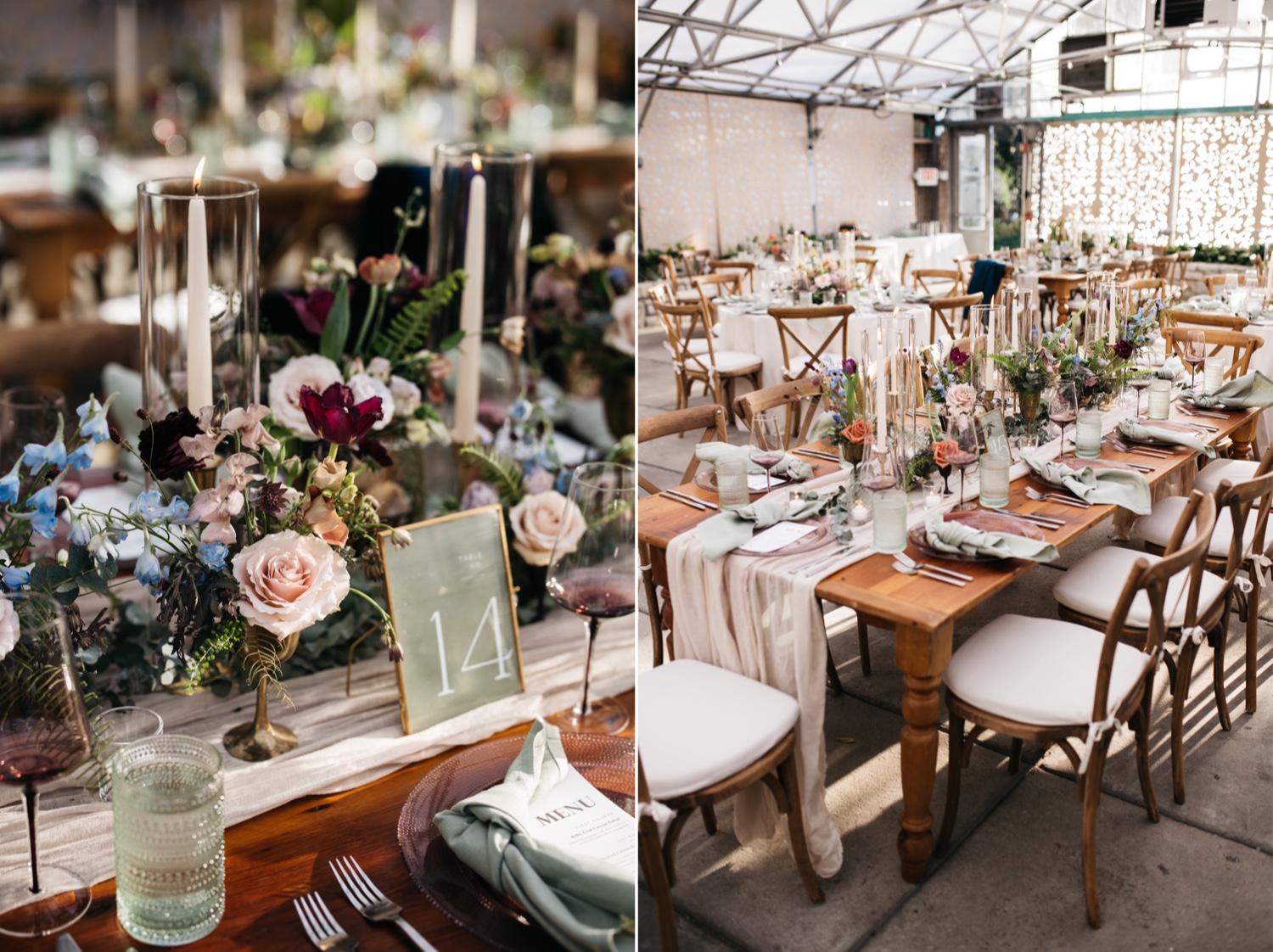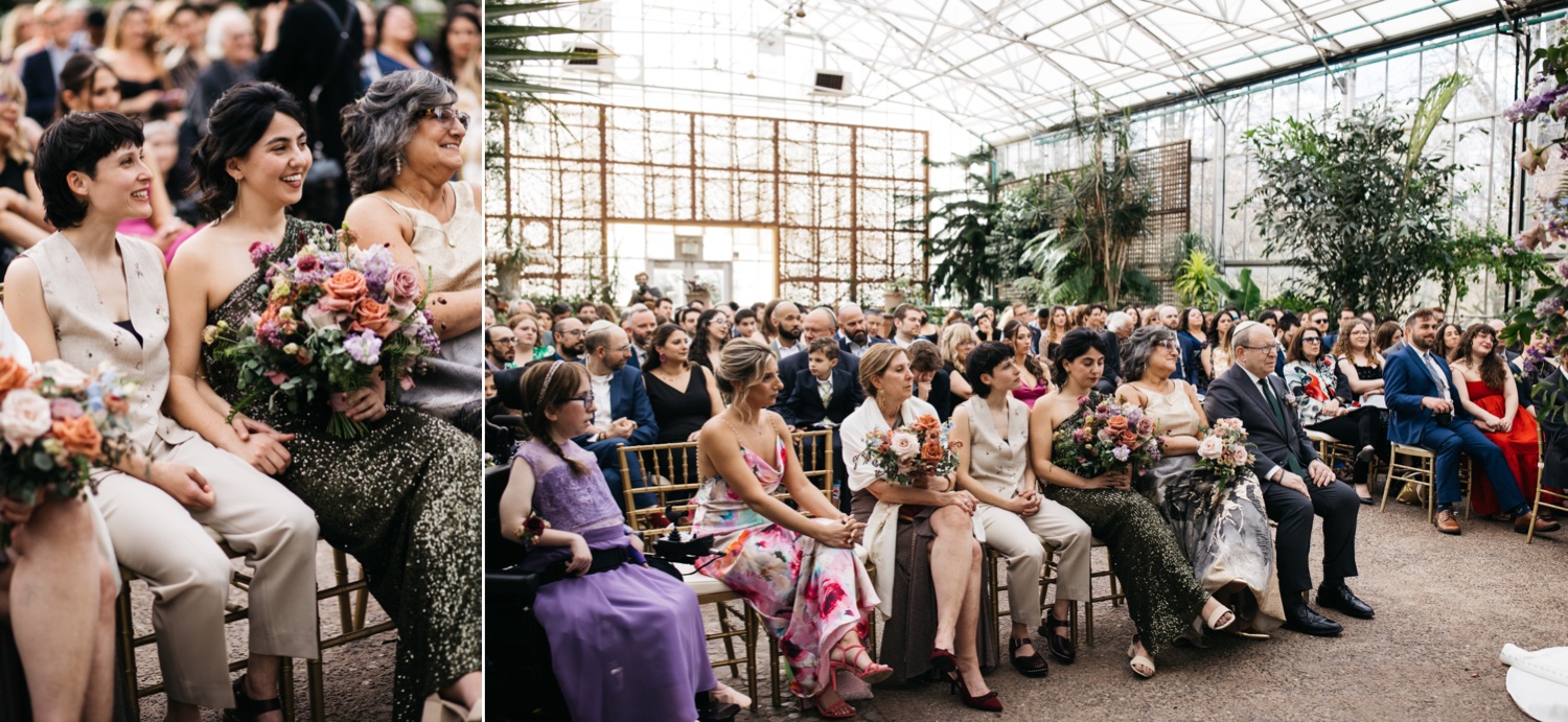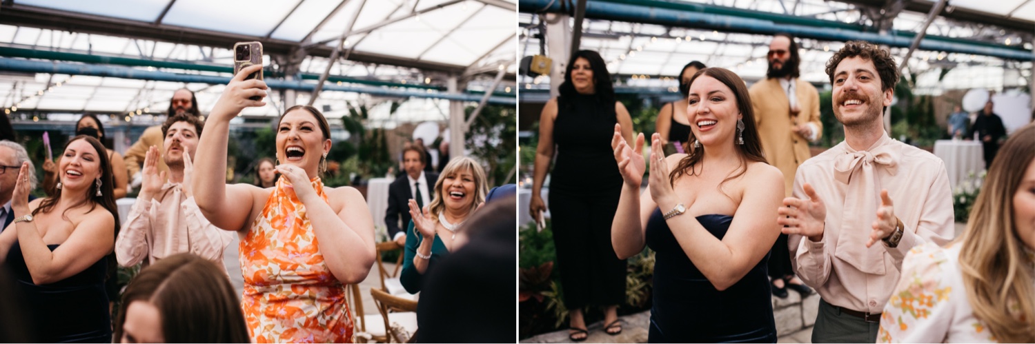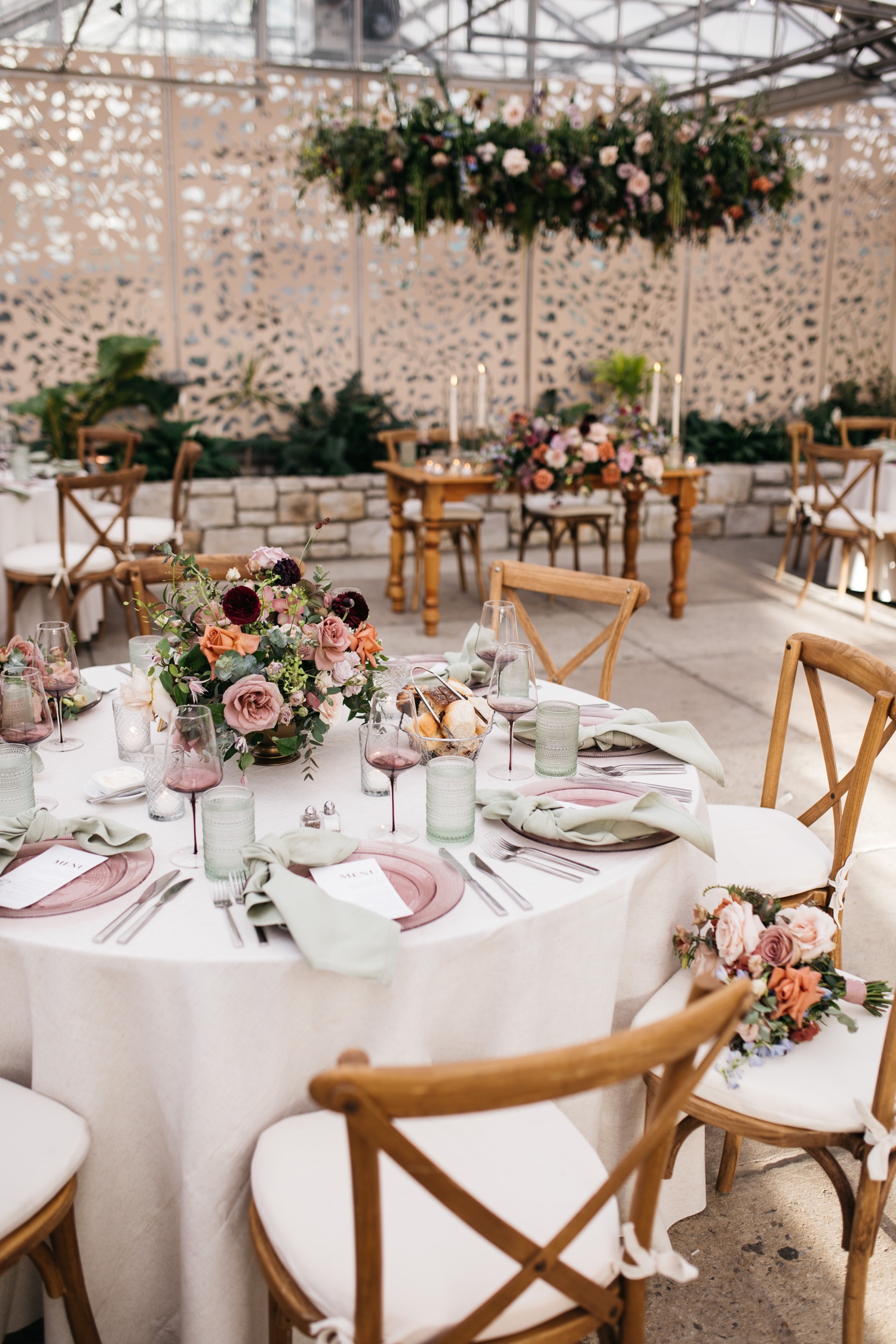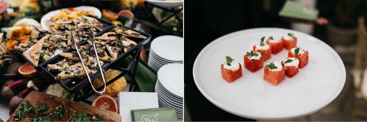 The Horticulture Center, which happens to be one of my favorites in Philly, was a perfect choice for their celebration. It is a stunning greenhouse in Fairmount Park filled with giant plants and lots of natural light. Sebesta Design provided the gorgeous florals for the ceremony and reception that fit so perfectly with the greenhouse vibes. The pink and green lounge area by Vine and Oak doubled as a beautiful backdrop for couple portraits.