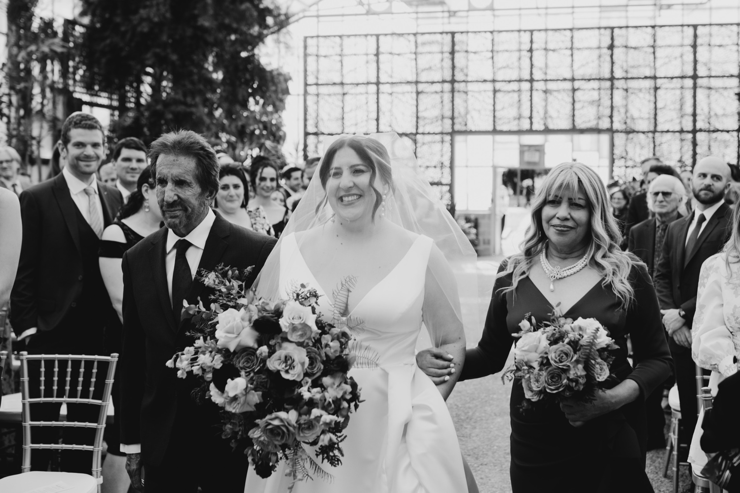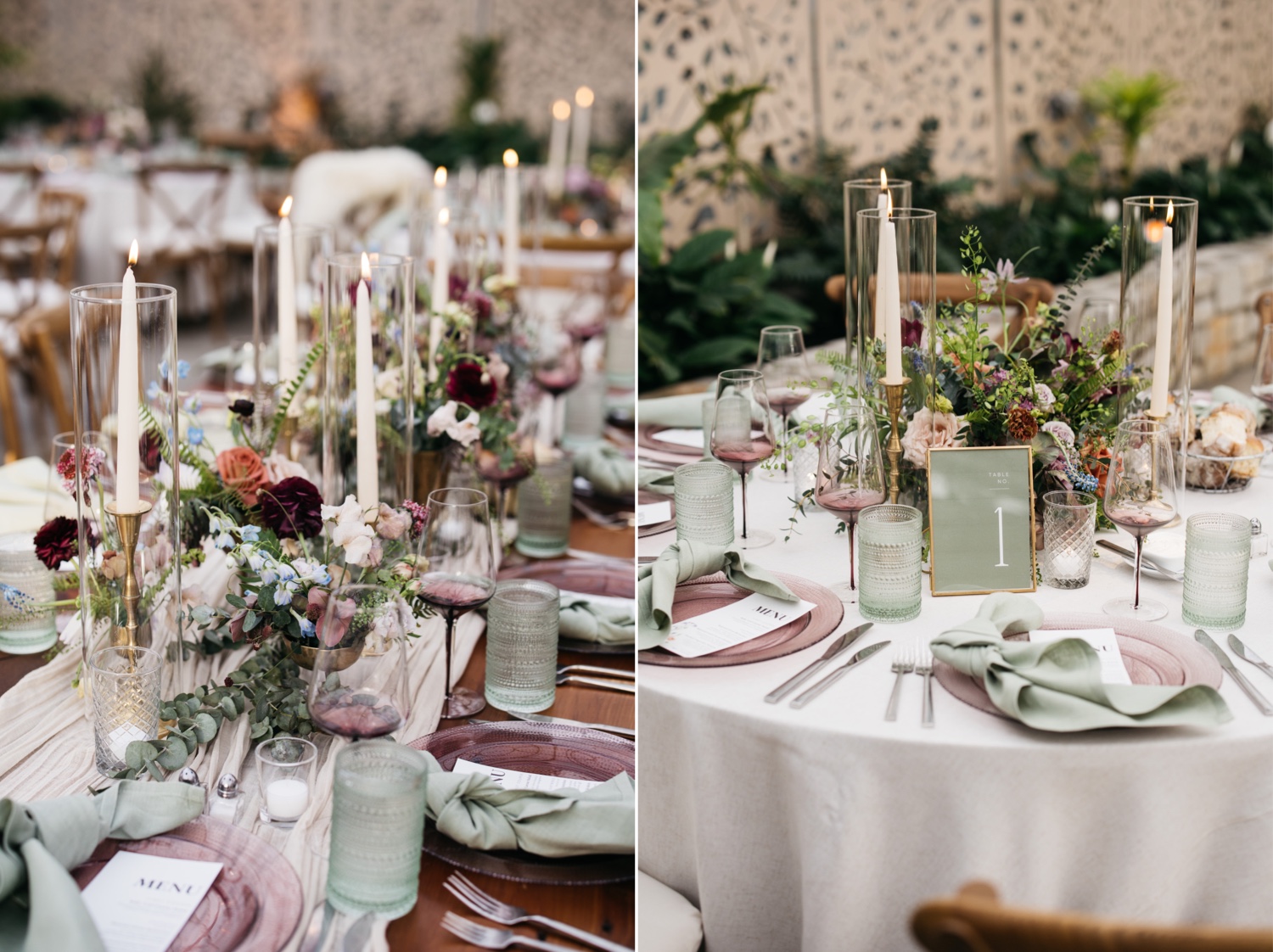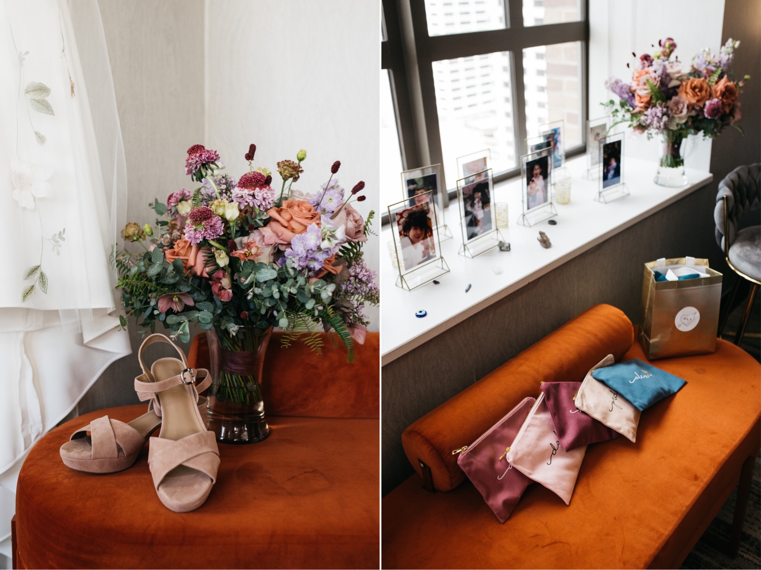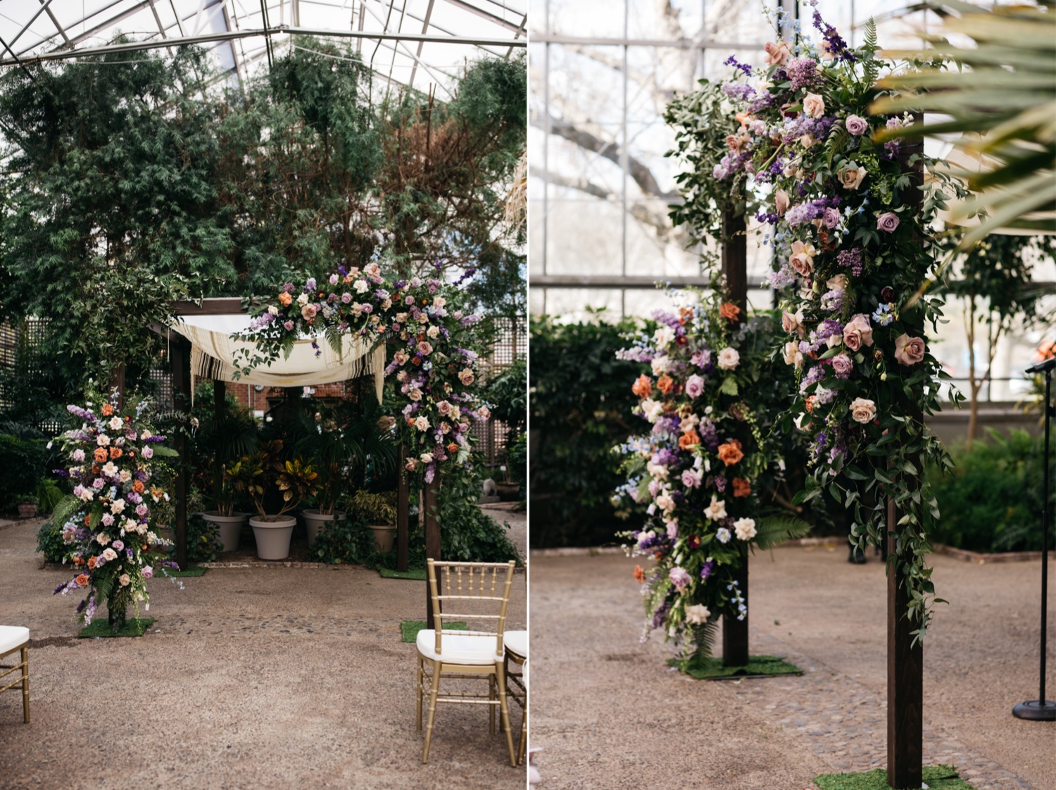 The Horticulture Center, which happens to be one of my favorites in Philly, was a perfect choice for their celebration. It is a stunning greenhouse in Fairmount Park filled with giant plants and lots of natural light. Sebesta Design provided the gorgeous florals for the ceremony and reception that fit so perfectly with the greenhouse vibes. The pink and green lounge area by Vine and Oak doubled as a beautiful backdrop for couple portraits.