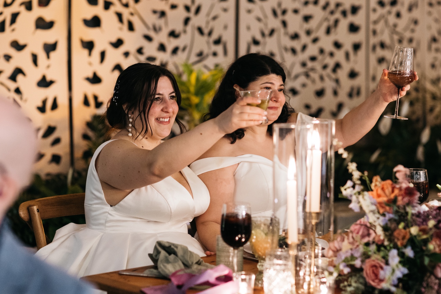 Finally, I loved that Dani and Ari’s guests took the “elevated cocktail hour” dress code seriously and had some impressive colorful outfits. And the brides’ second outfits at the end of the night were so fun!